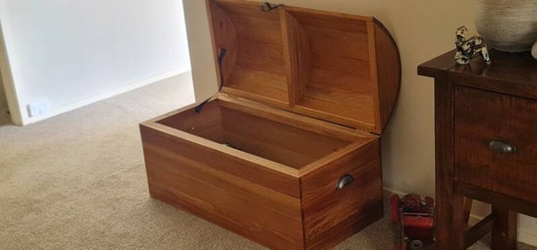 Rimu storage chest with metal detailing